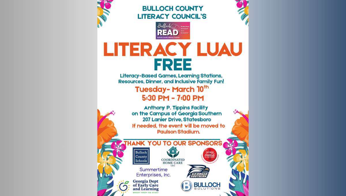 Guests will also enjoy door prizes, free food, free children’s books, and the Bulloch County Schools Book Bus. The winners of the Literacy Council’s 6th Annual Reading Nook Photo Contest will also be announced.