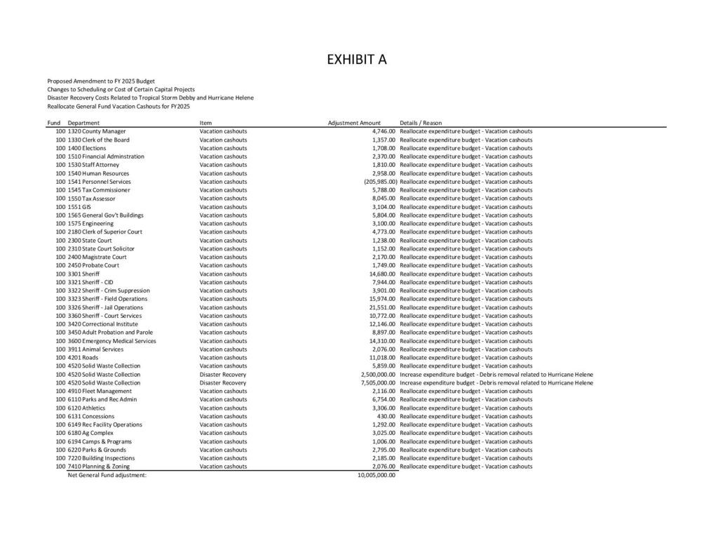 of $10,005,000, the majority of which is expected to be reimbursed by FEMA and GEMA.