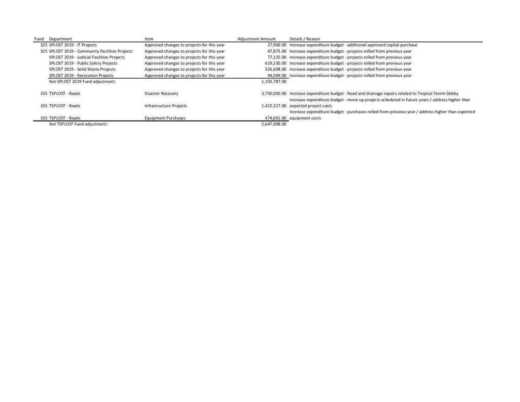 TSPLOST Fund: The adjustment will increase the expenditure budget by $5,647,008. Some of this is