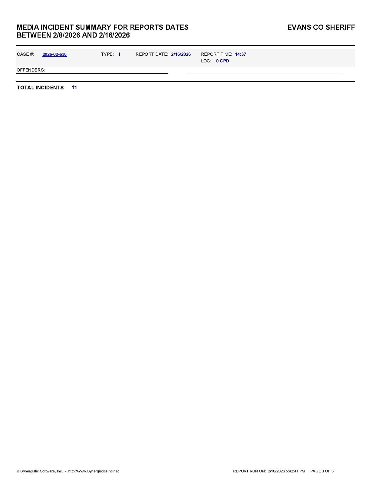 Images from the Evans Co Jail Booking & Incident Report for 02/16/26: