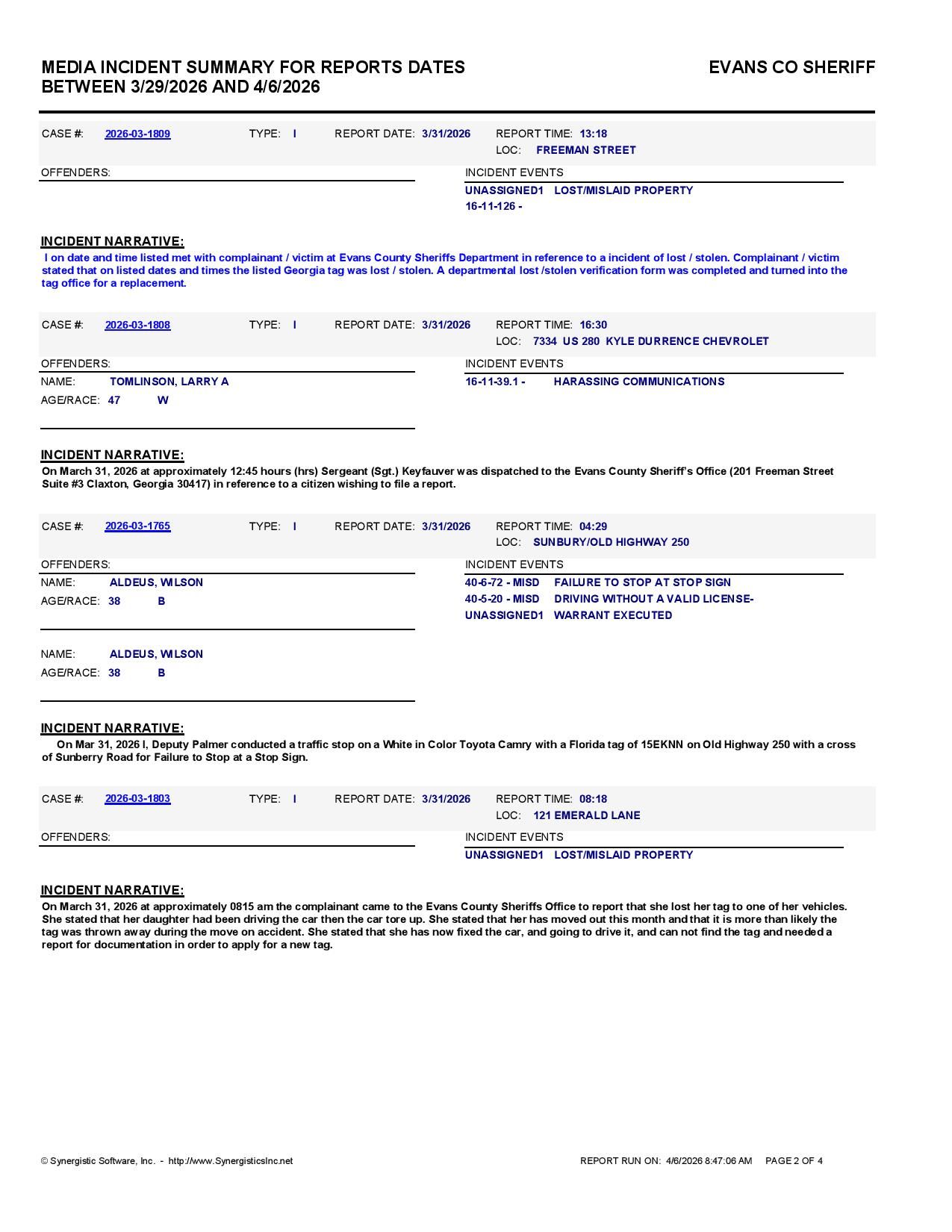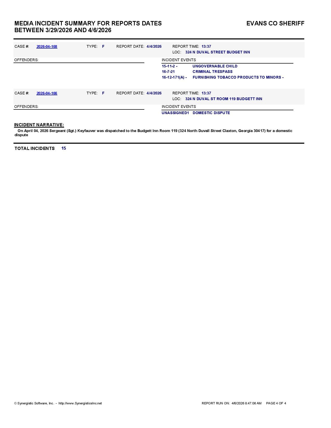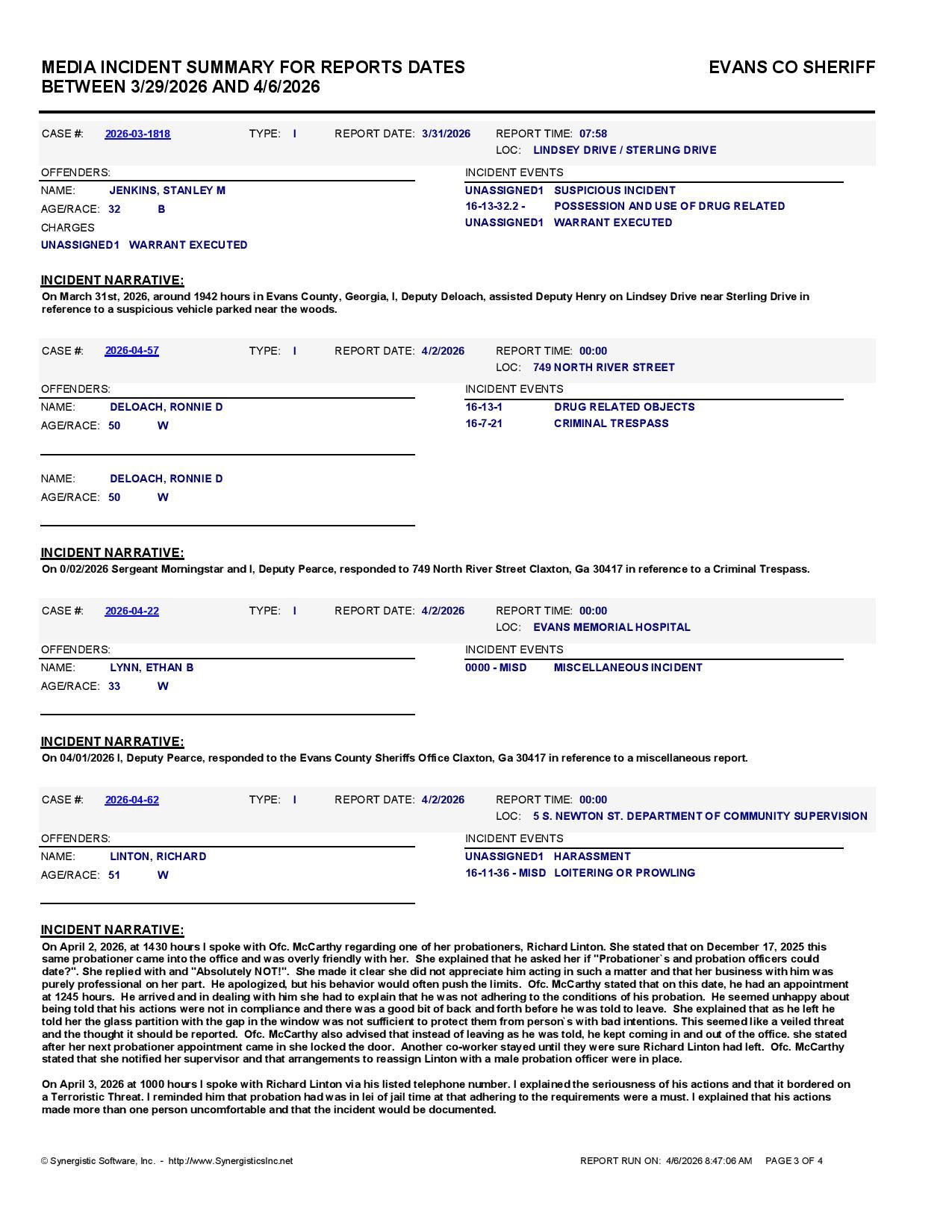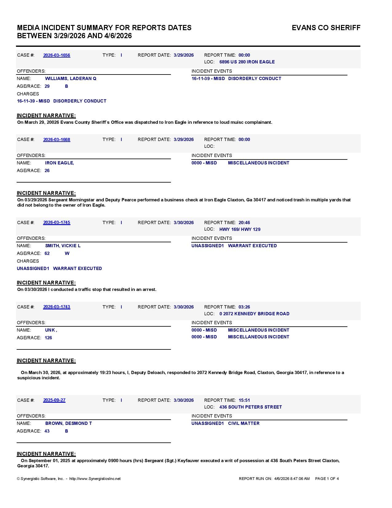 Candler Co. Jail Booking & Incident Report – 04/06/26