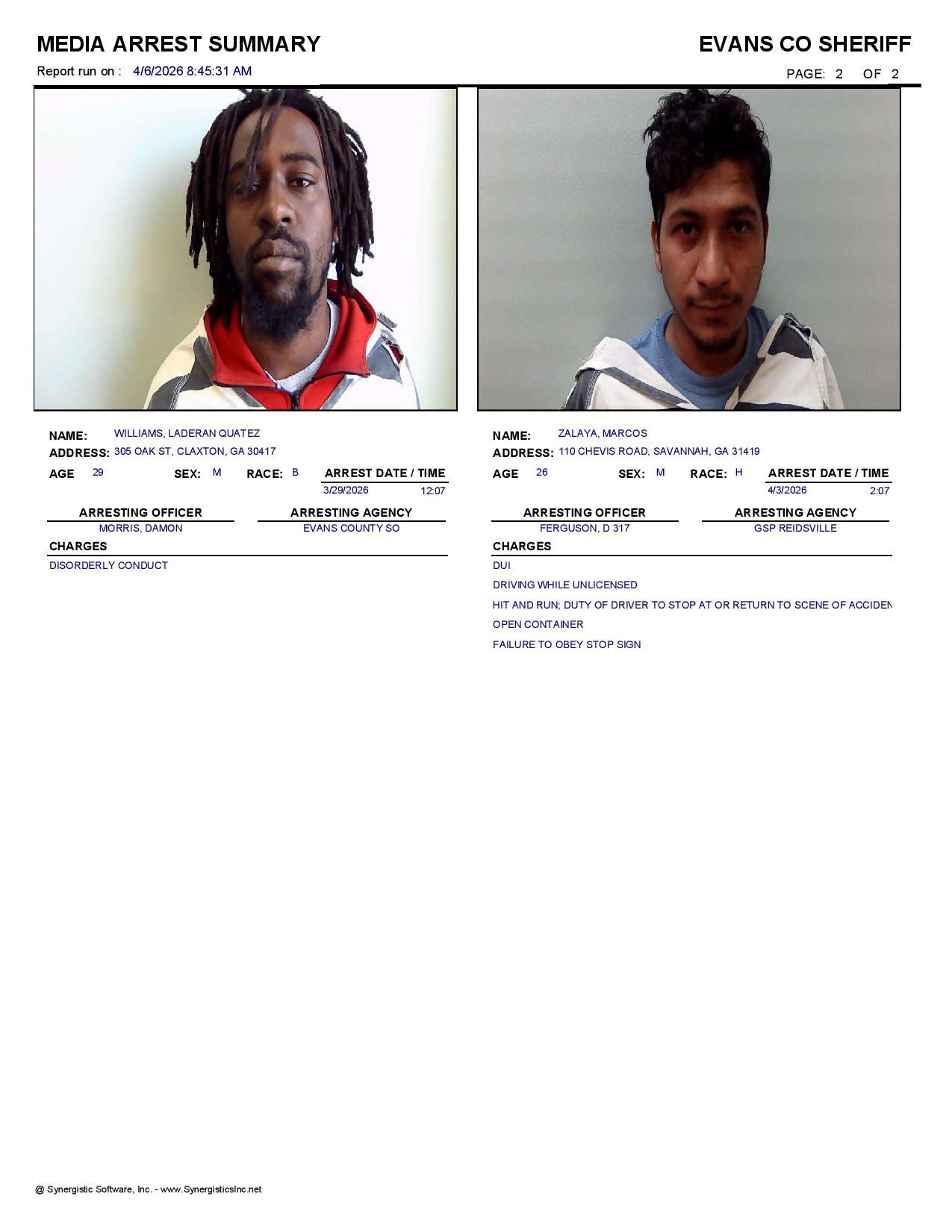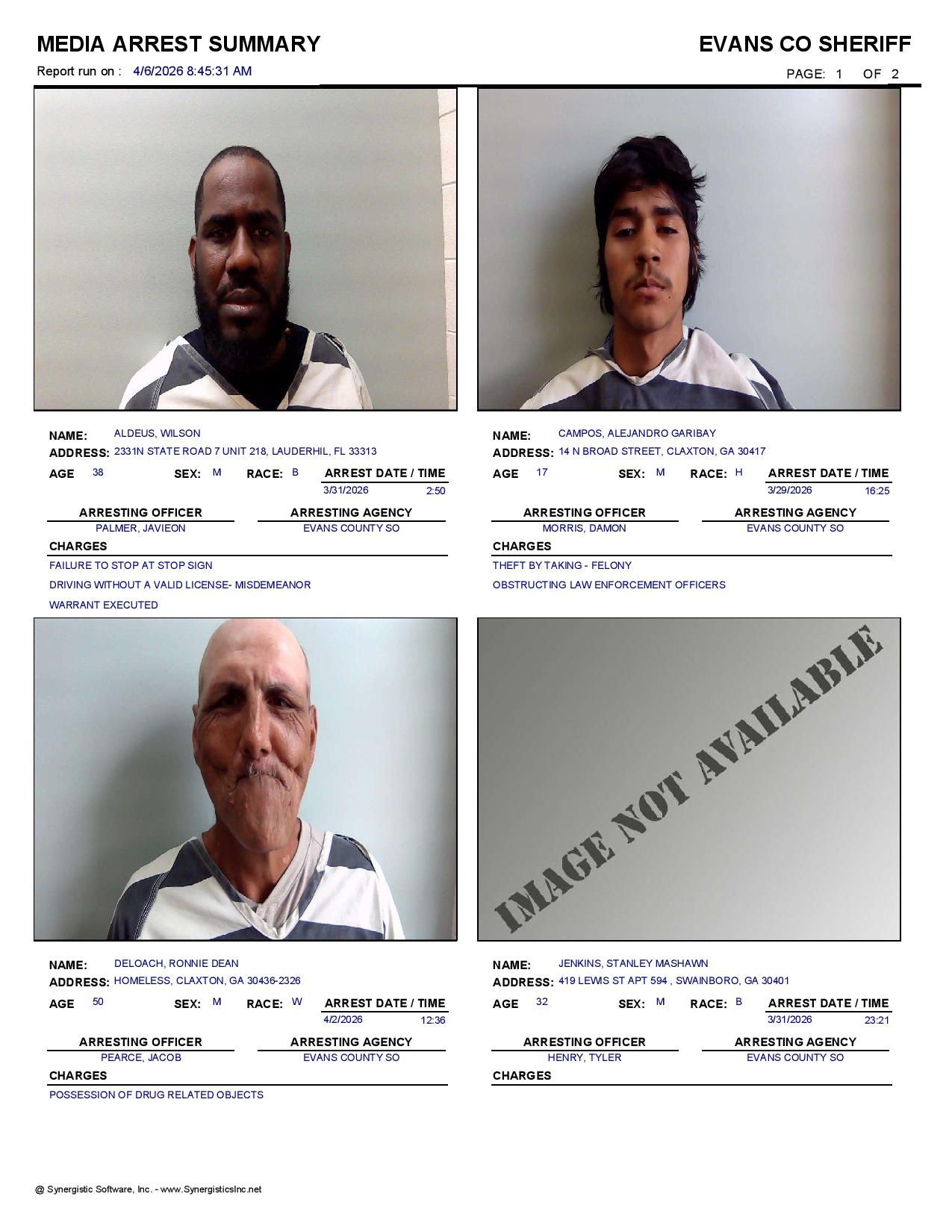 Images from the Evans Co Jail Booking & Incident Report for 04/06/06: