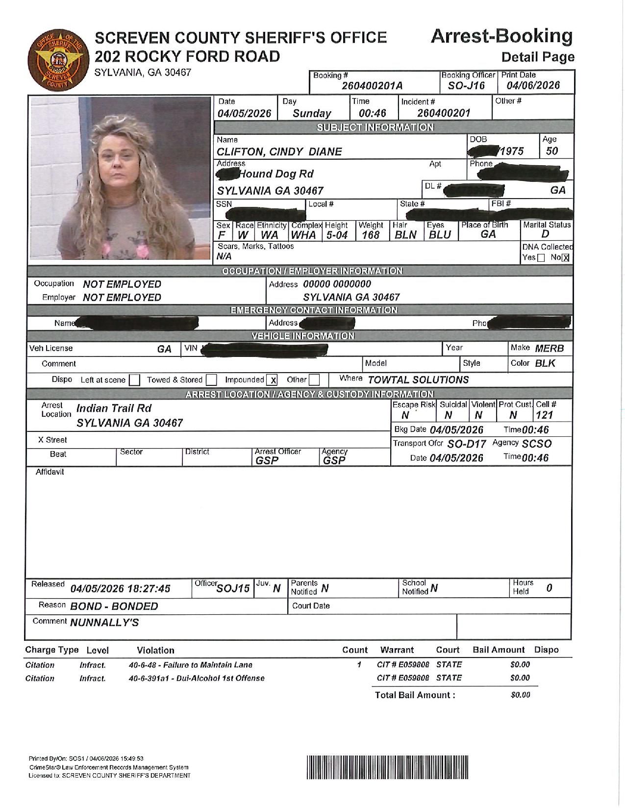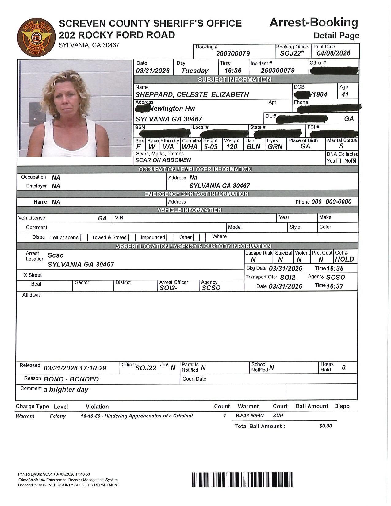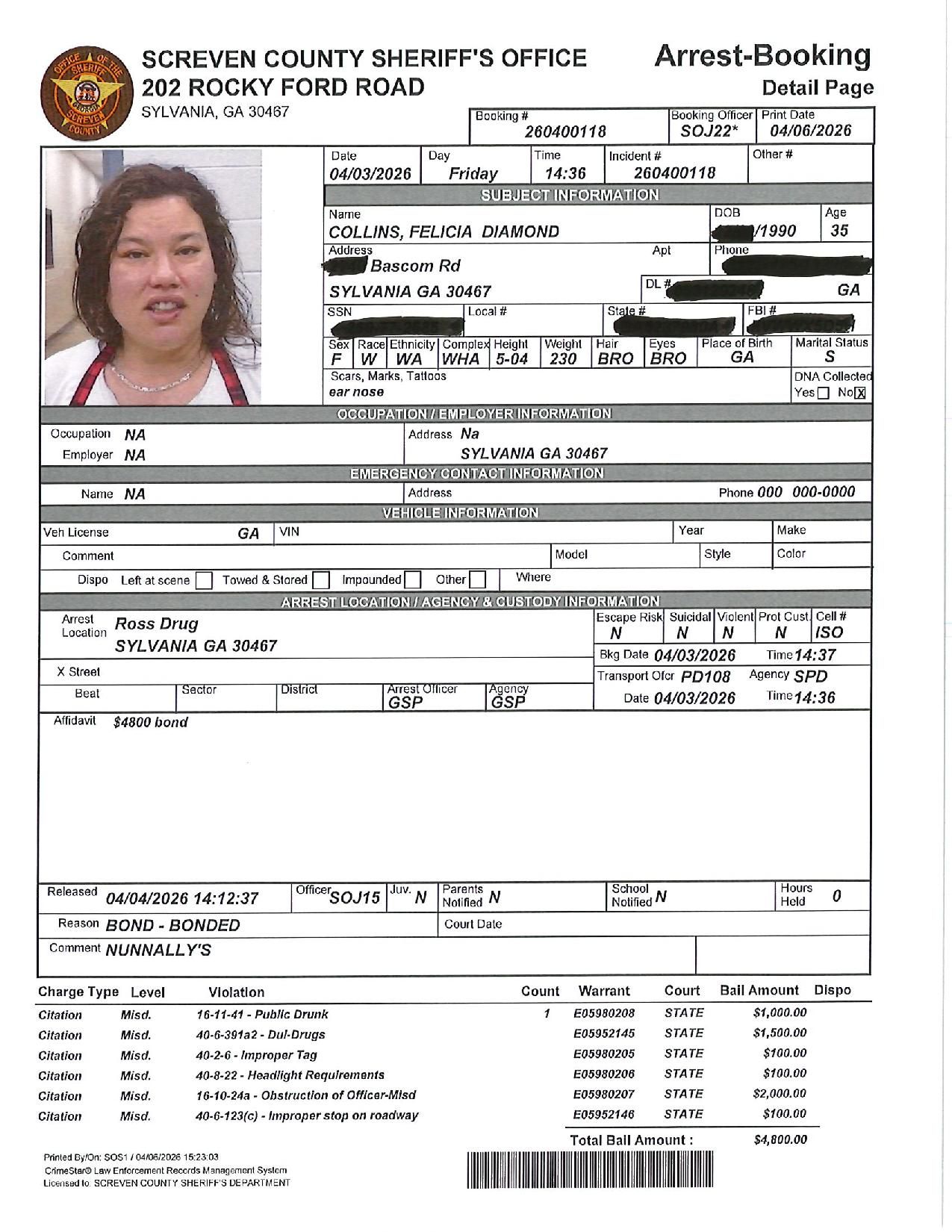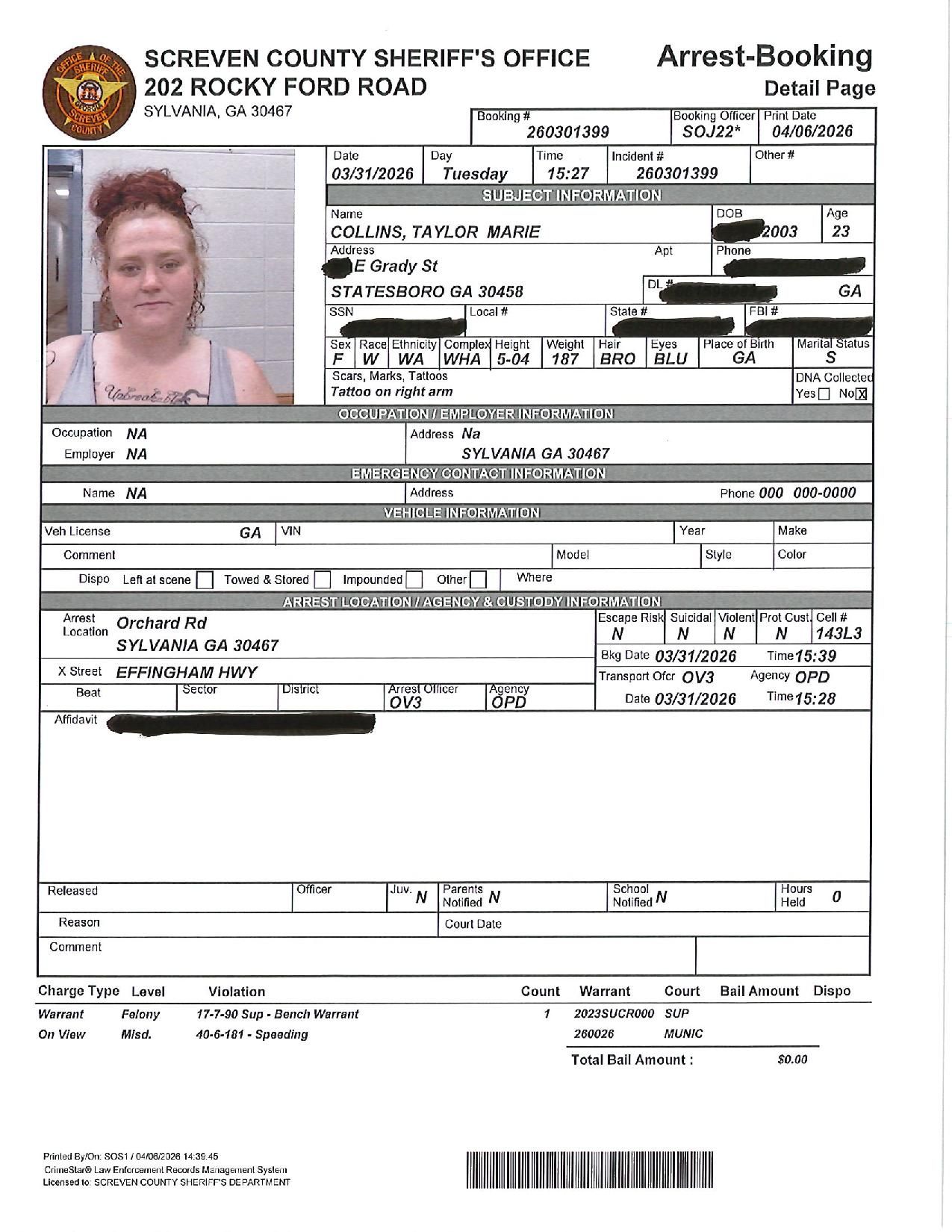 The Screven Co Jail Booking & Incident Report 04/07/26 details arrests from Screven County, area municipalities, the Georgia State Patrol, and any inmates which may be housed for neighboring agencies. Incident reports are from the Sheriff’s Office only.