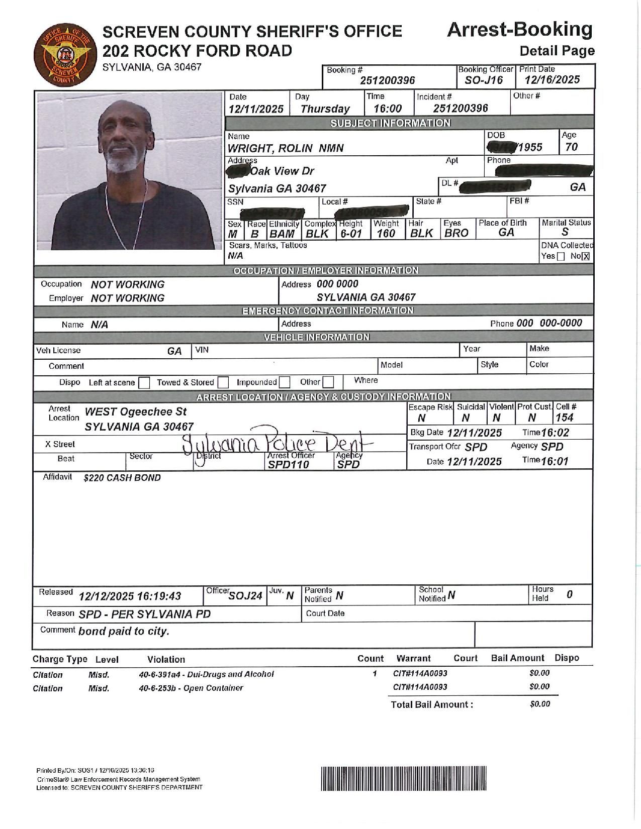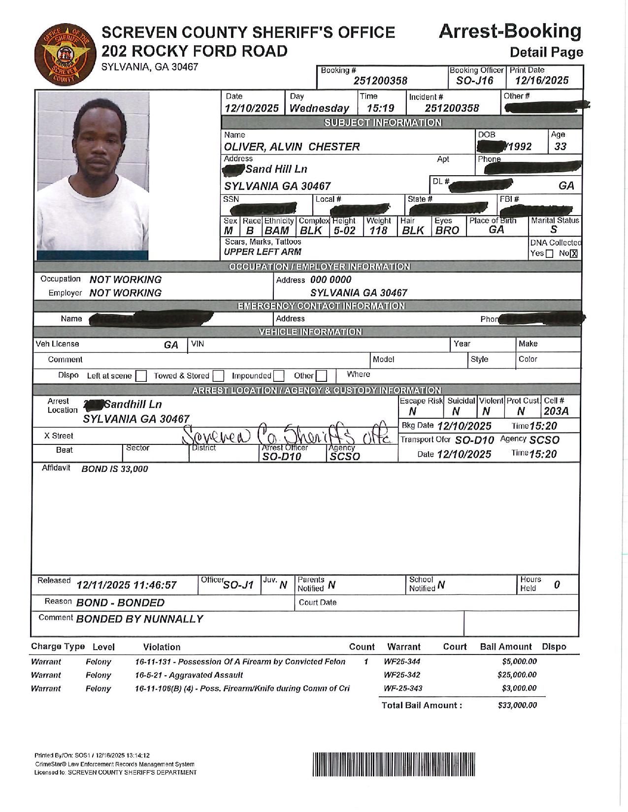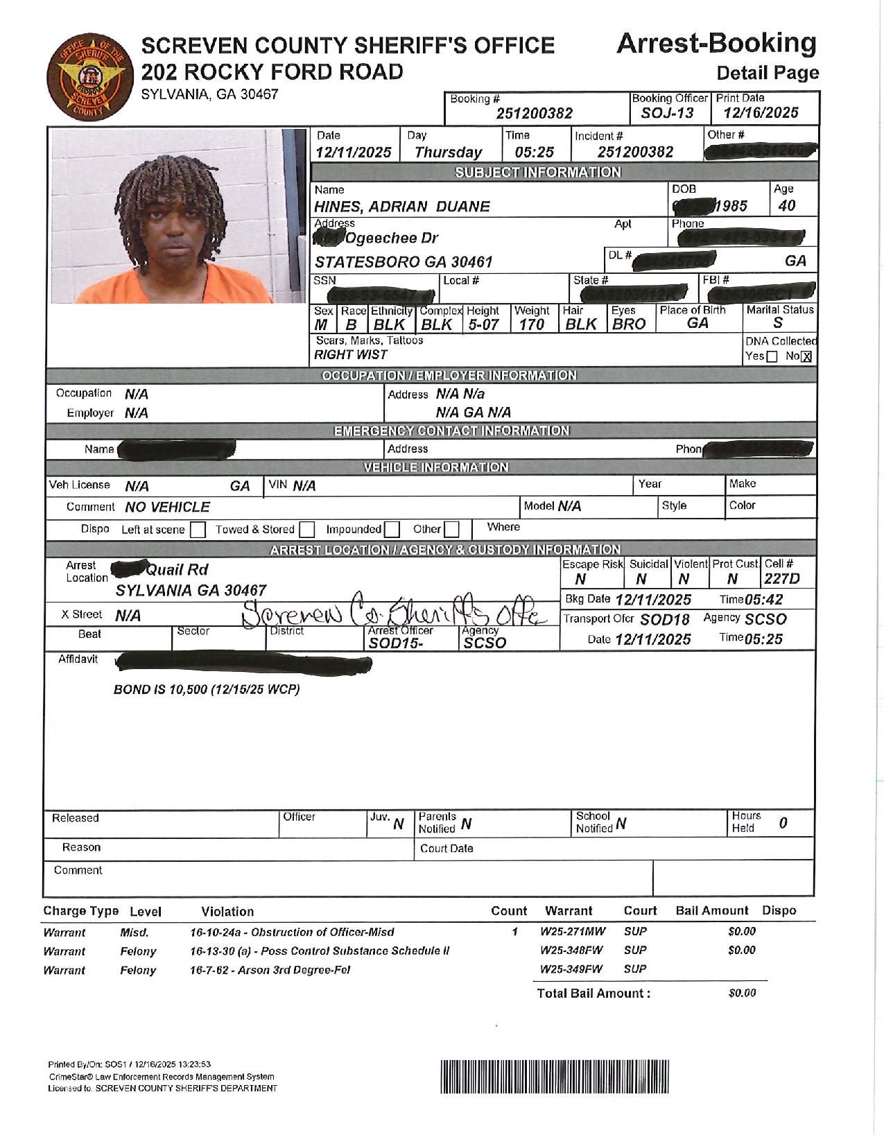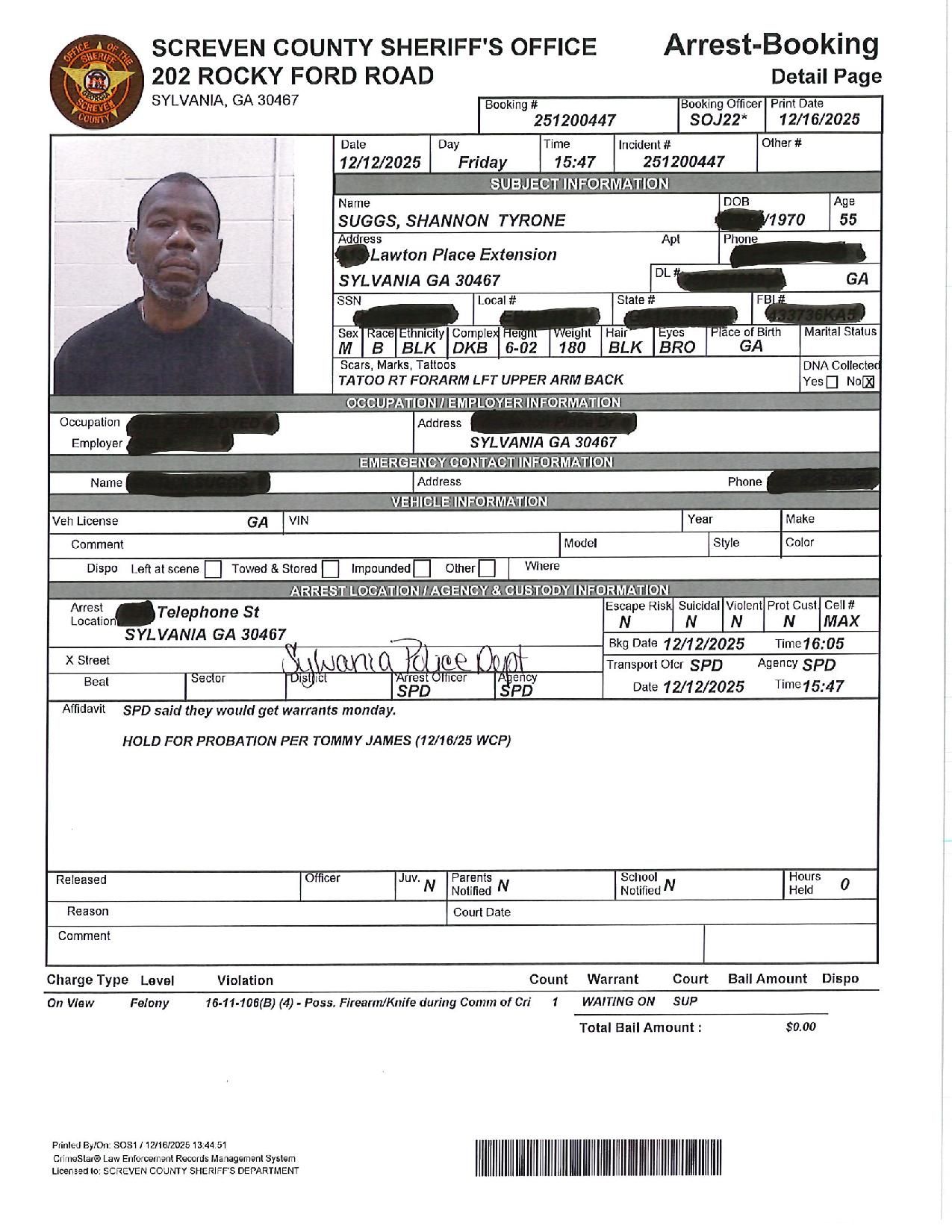 Screven Co. Jail Booking & Incident Report – 12/17/25