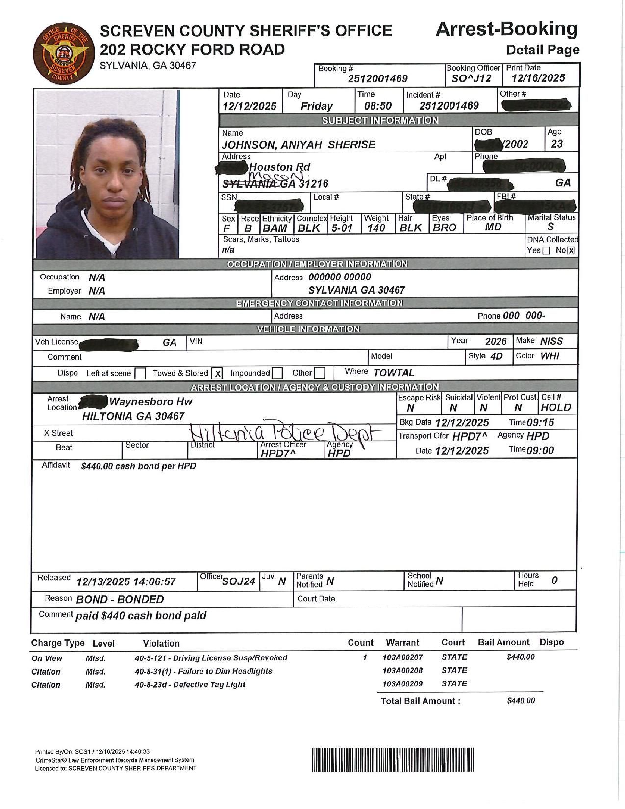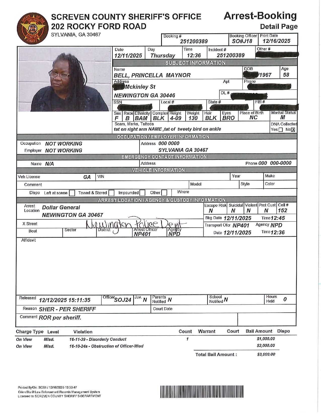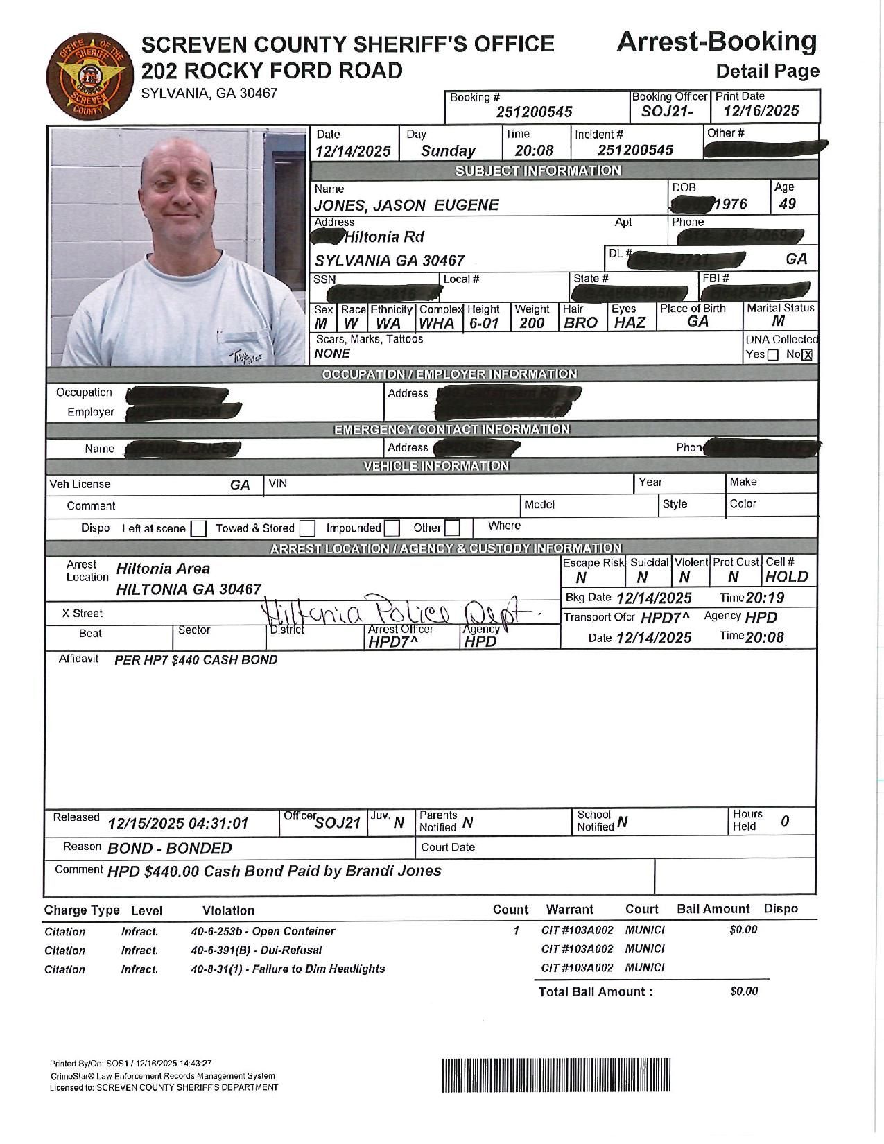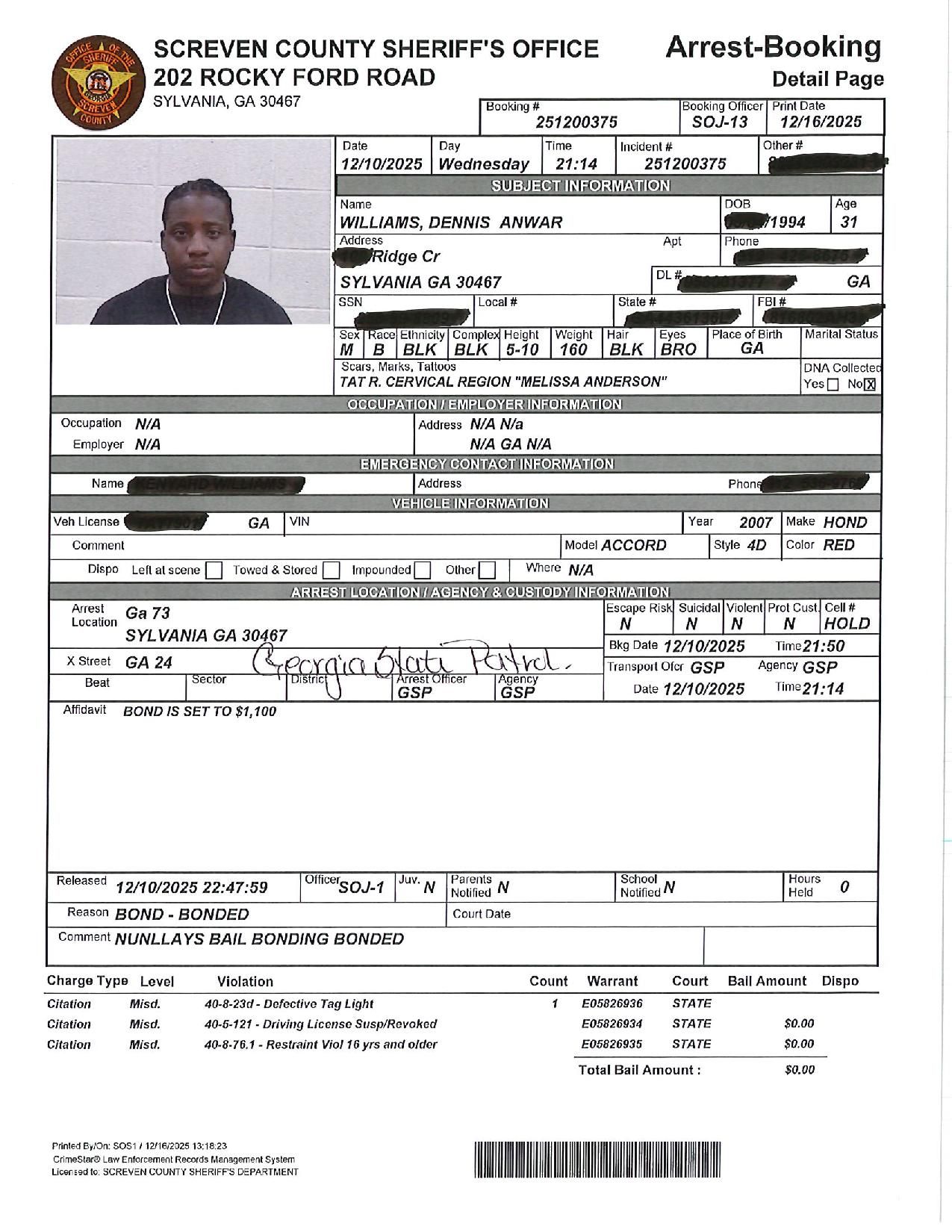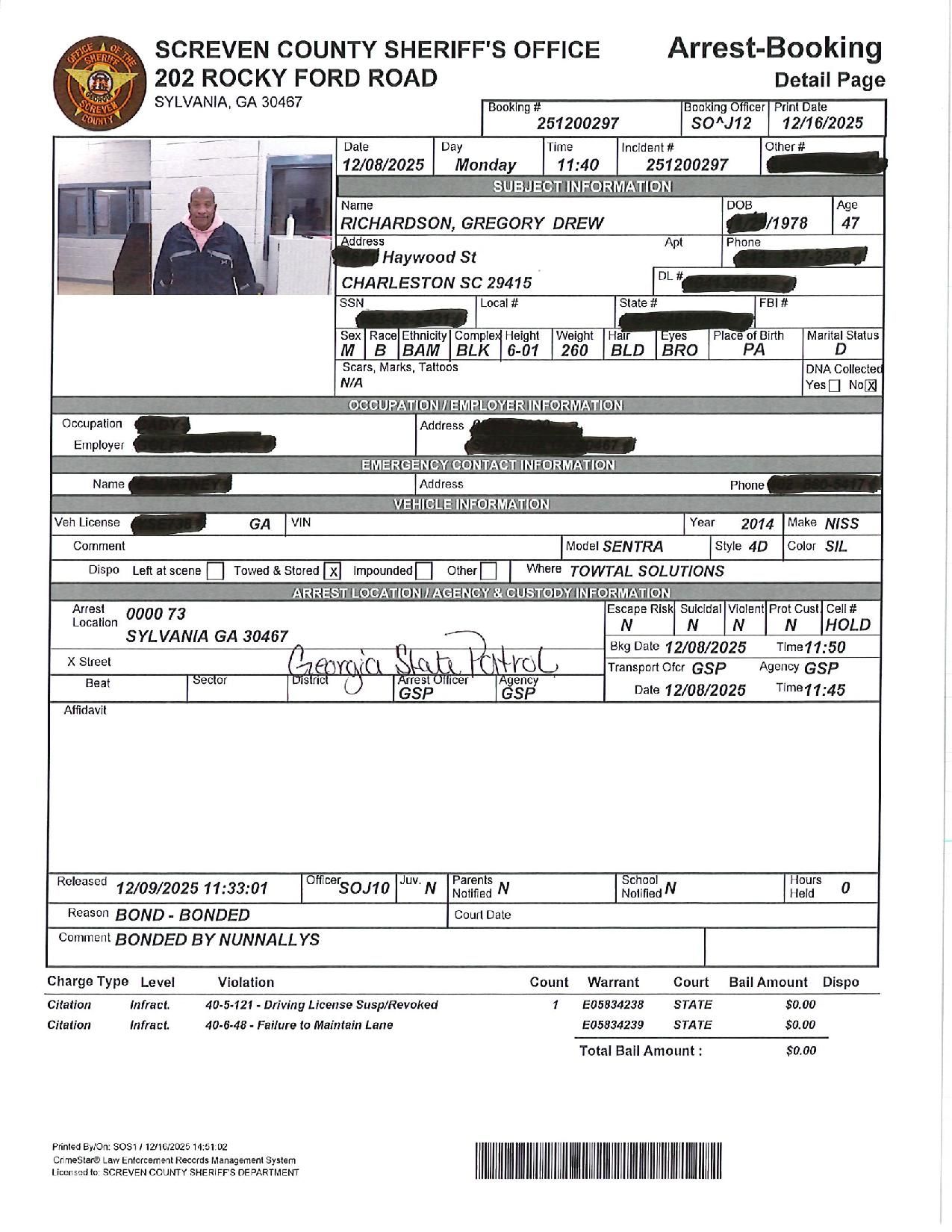 Screven Co. Jail Booking & Incident Report – 12/17/25