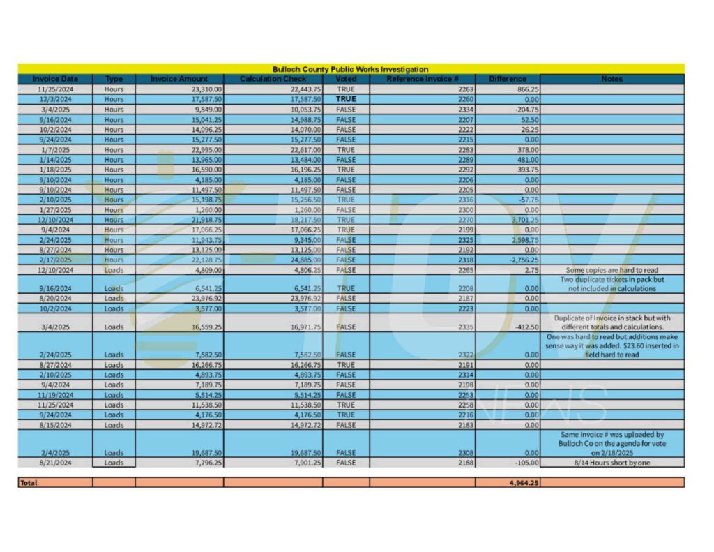 In February 2025, the Georgia Bureau of Investigation opened an investigation into the Bulloch County Public Works Department to examine bidding procedures and concerns over invoices stemming from Hurricane Helene.