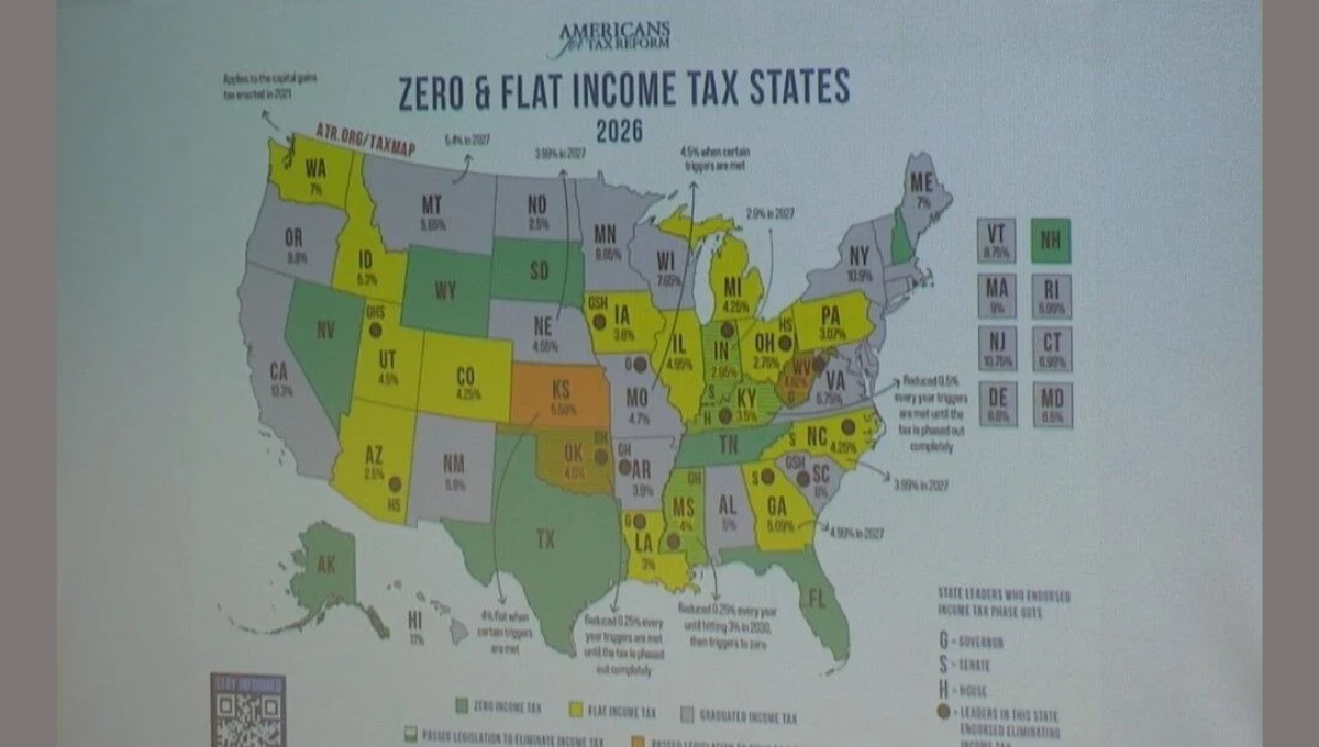 Georgia’s southern and northern neighbors, Florida and Tennessee, already do not have a state income tax, along with seven other states. North Carolina and South Carolina lawmakers are working toward zero, Grover Norquist, president and co-founder of Americans for Tax Reform, told the city.